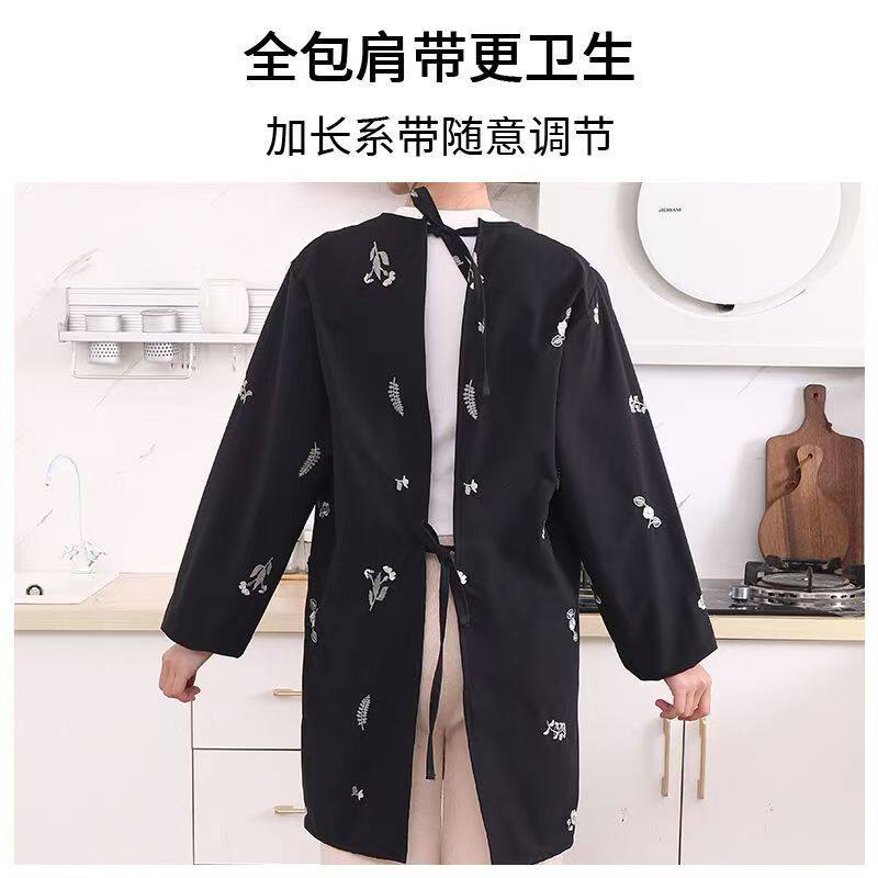 2026日本新款棉麻长袖围裙家用厨房透气罩衣女耐磨防污做饭工作服