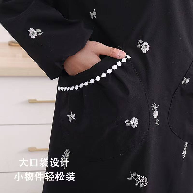 新款棉布耐磨围裙长袖厨房家用防污罩衣透气围腰做饭上班工作服女