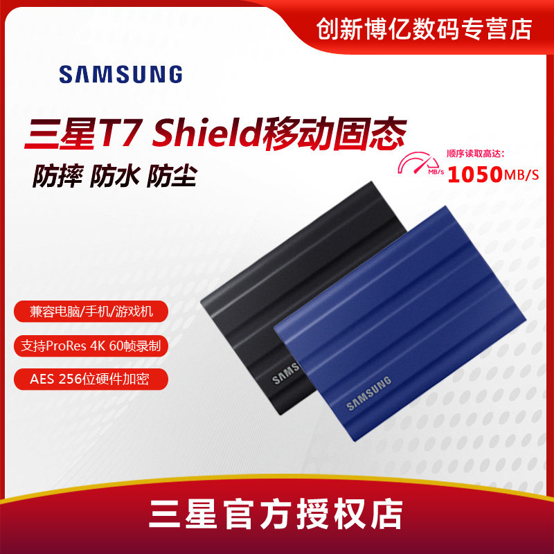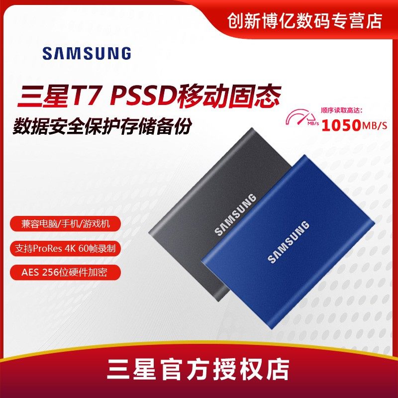 三星T7移动固态硬盘1T USB3.2 电脑手机硬件加密存储备份外置PSSD