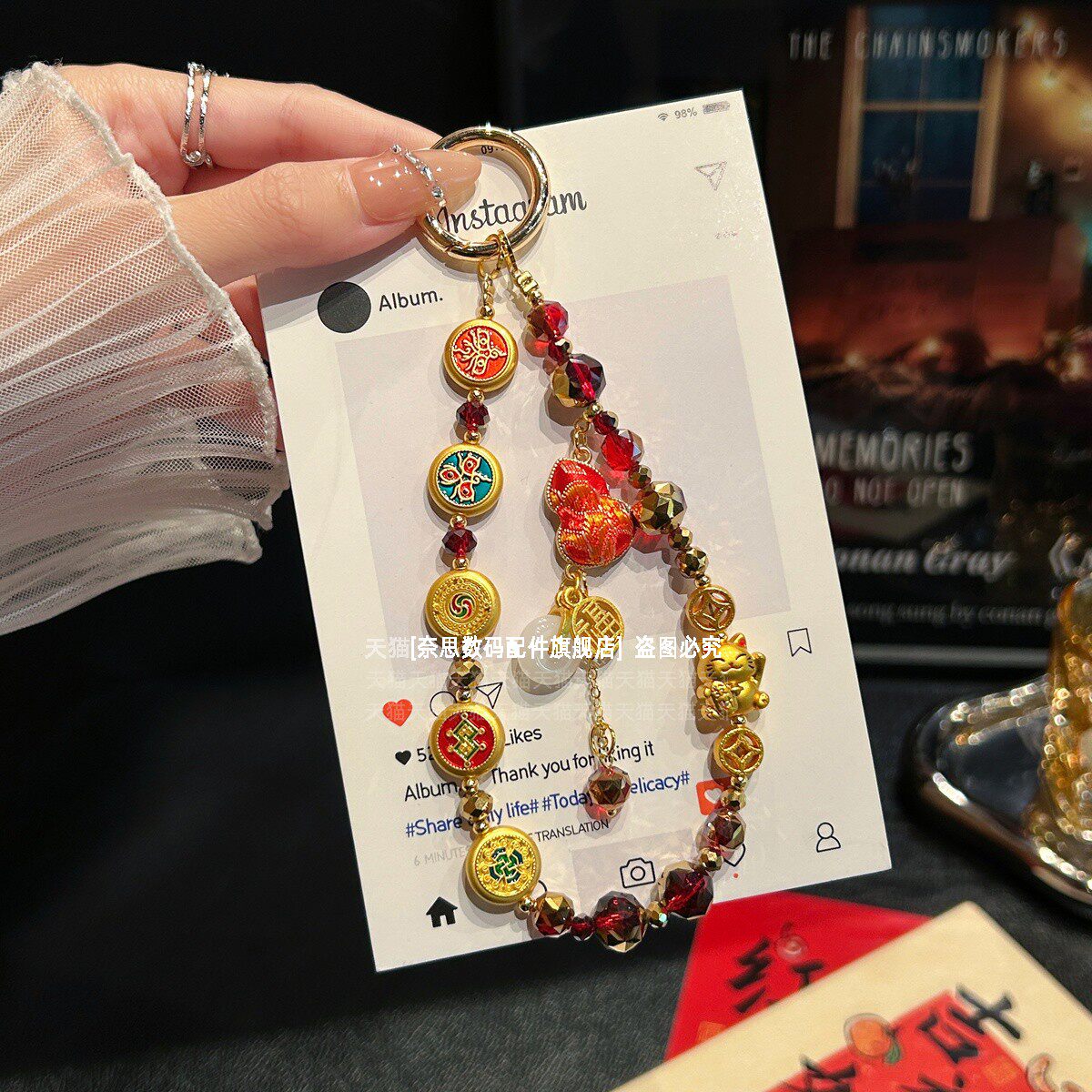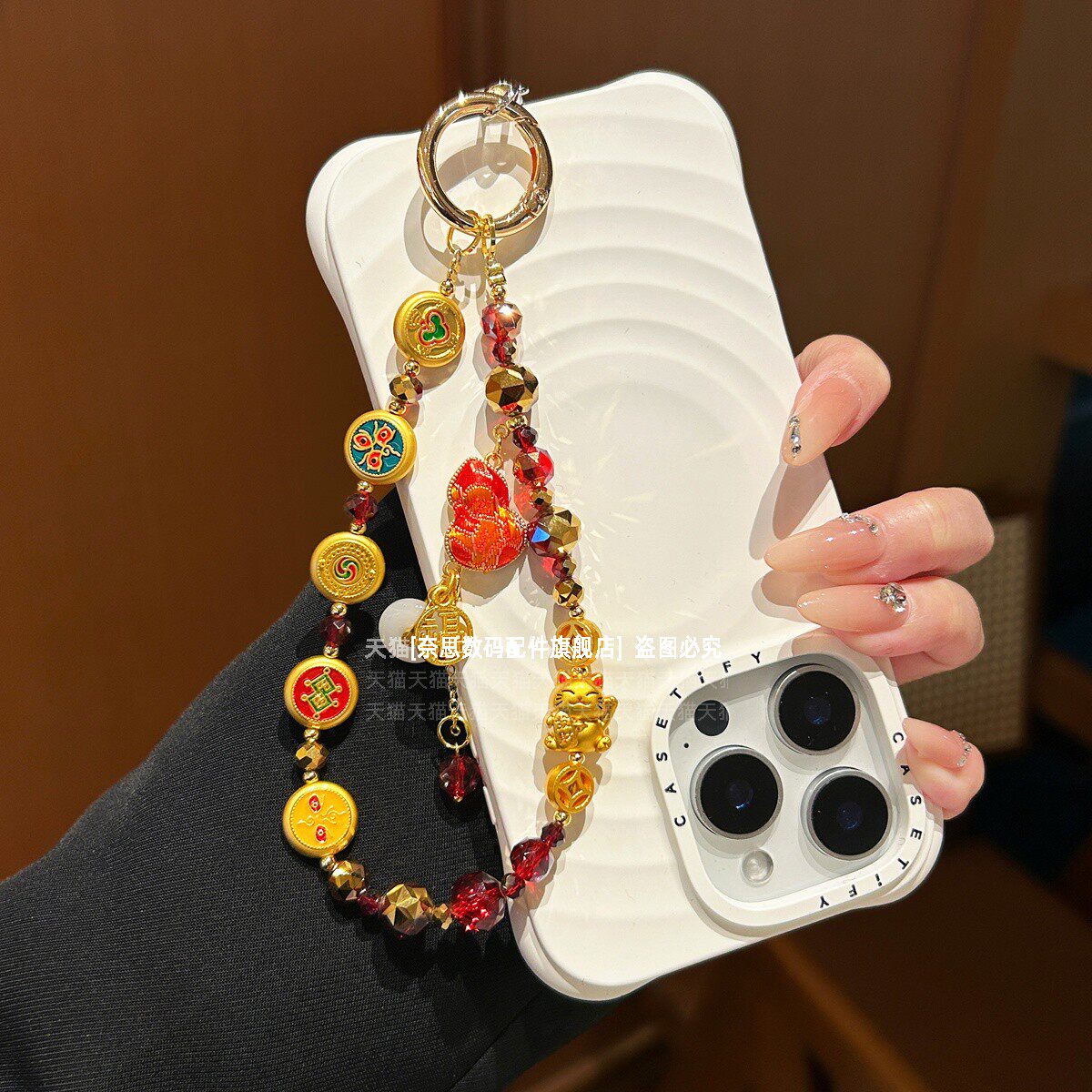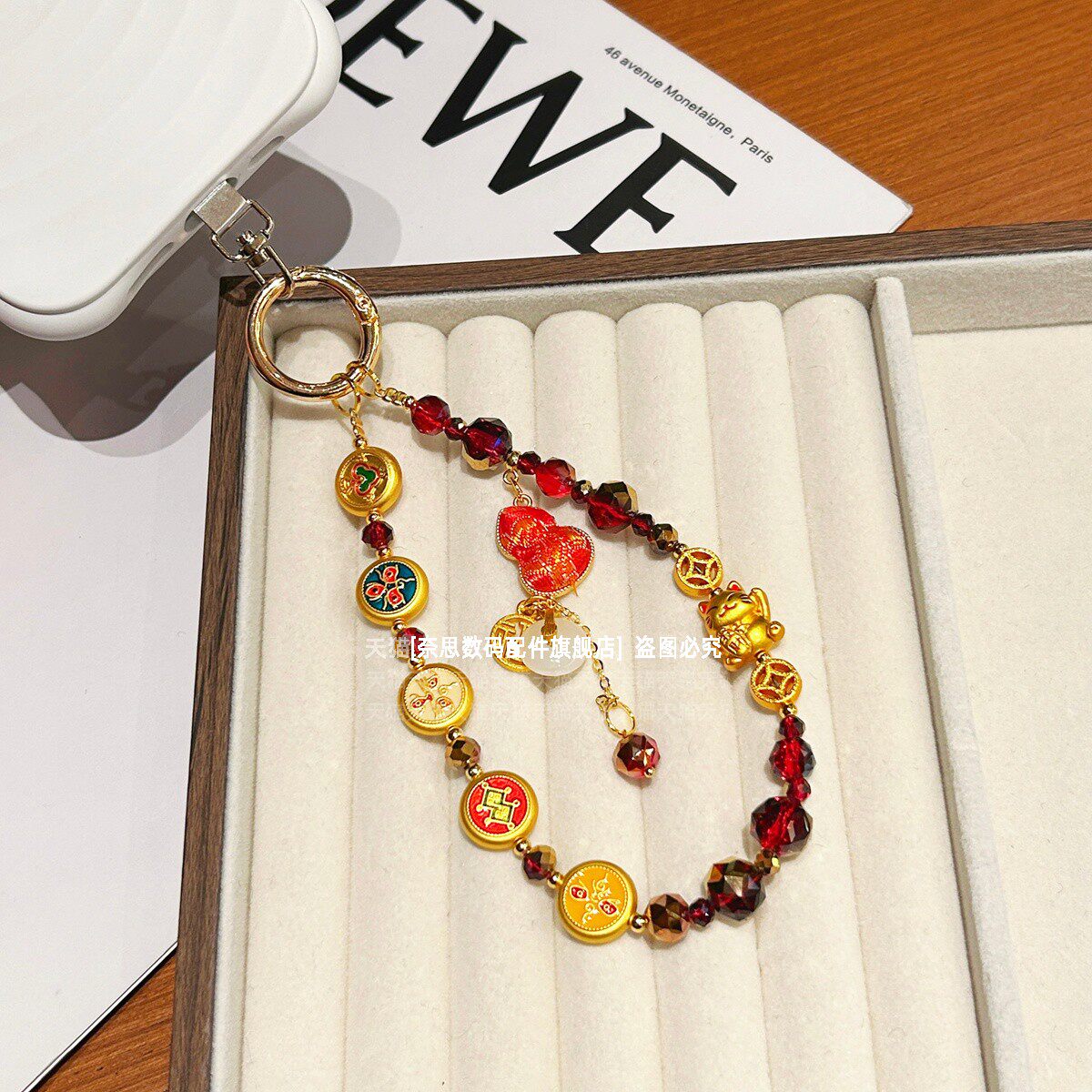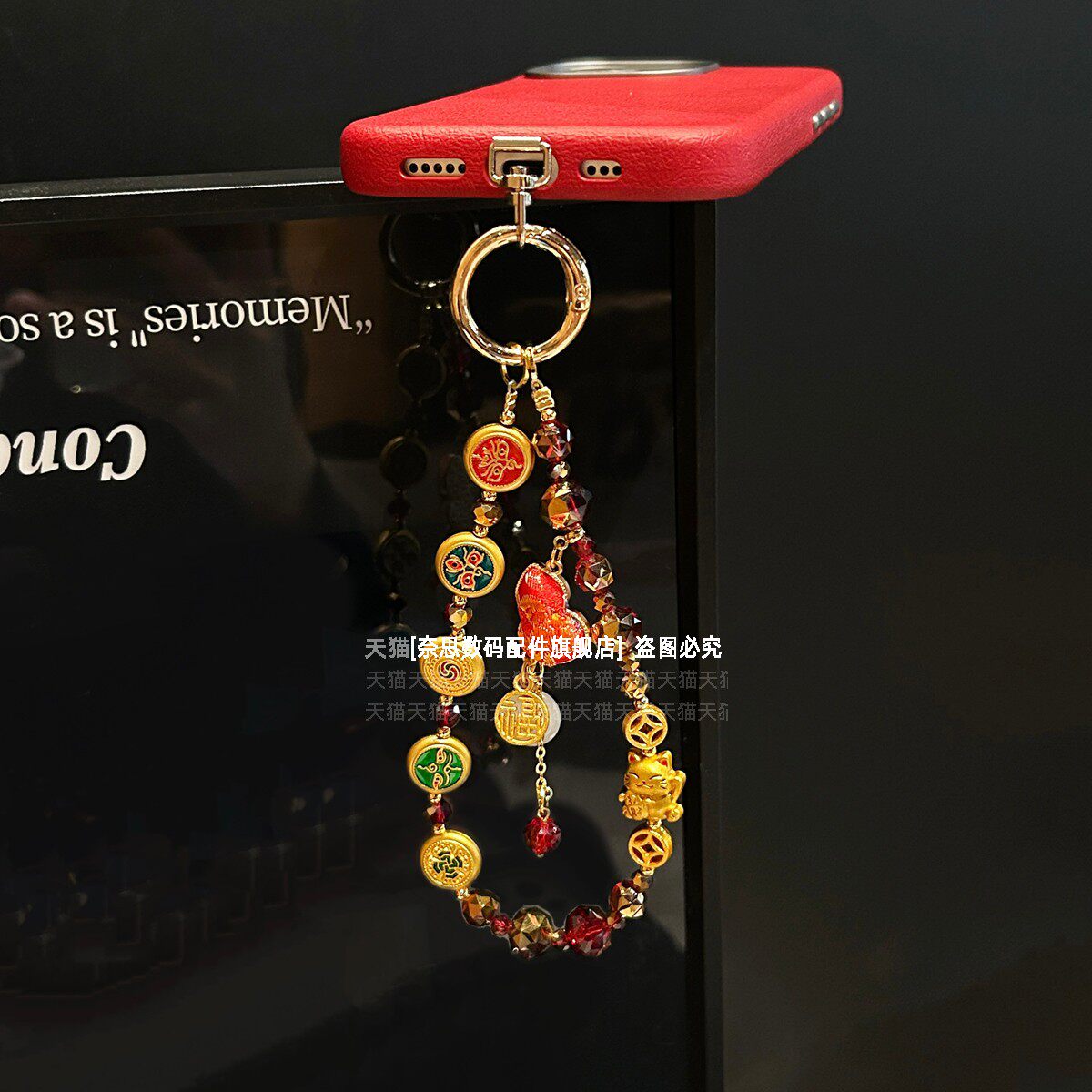 好运平安扣葫芦手机链五路财神精致国潮挂链高端金属招财猫红色水晶链条挂手腕串珠挂绳手链福吊坠马年垫片壳
