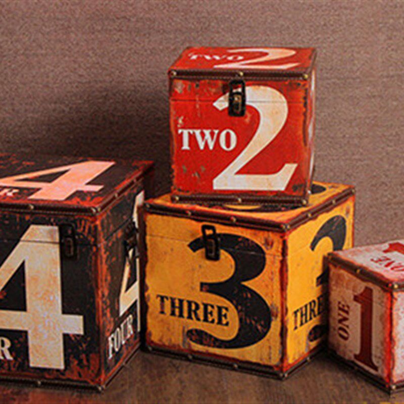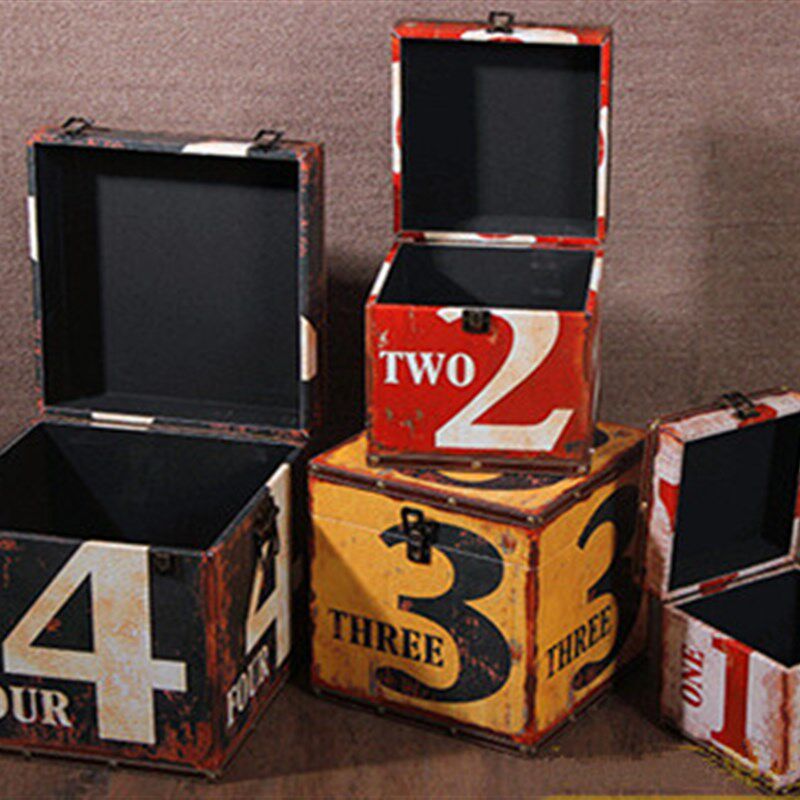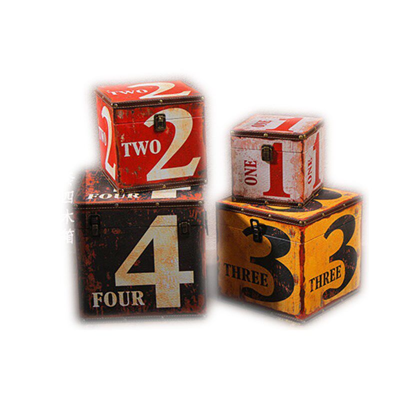 复古套装收纳木箱子数字正方形乡村橱窗摆件摄影楼美式拍摄皮箱子