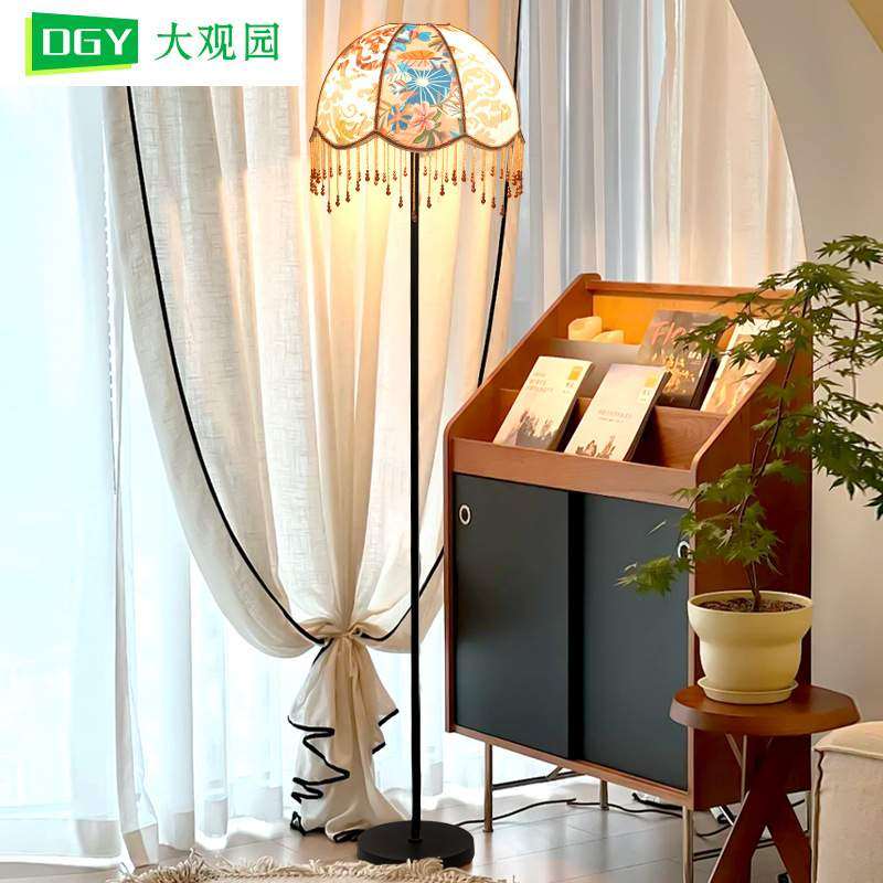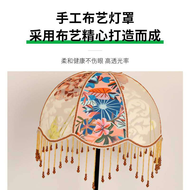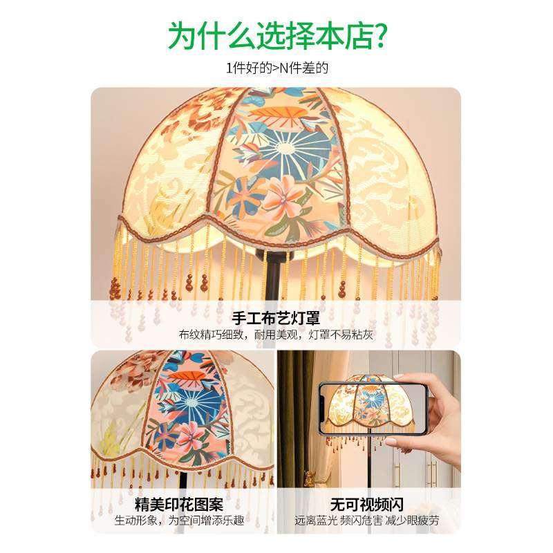 卧室床头落地灯法美式中复古客厅沙发旁印花布艺装饰氛围灯具194L