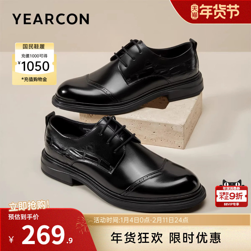 意尔康男鞋2025新款三接头真皮正装商务皮鞋男士年轻人新郎结婚