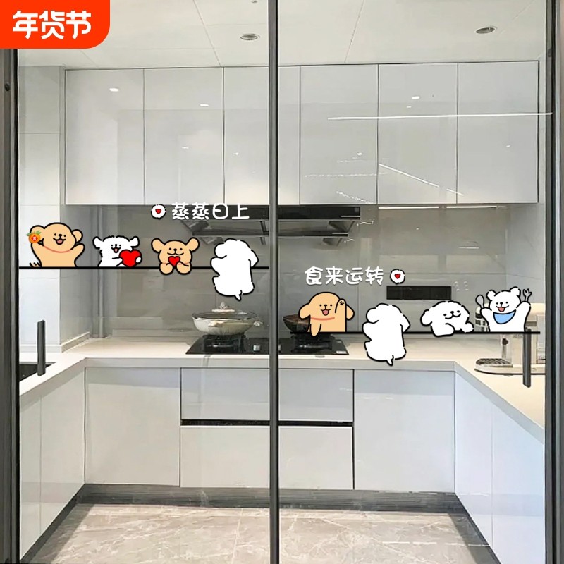 新年线条小狗厨房玻璃门贴纸阳台橱窗装饰贴推拉门马年静电贴防水