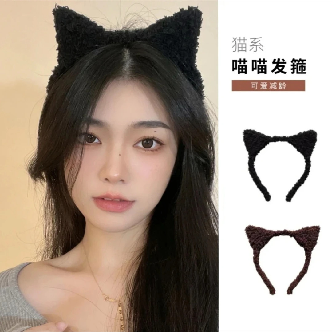 韩式猫咪耳朵可爱发箍洗脸女2025新款头箍化妆毛绒发卡甜美发饰