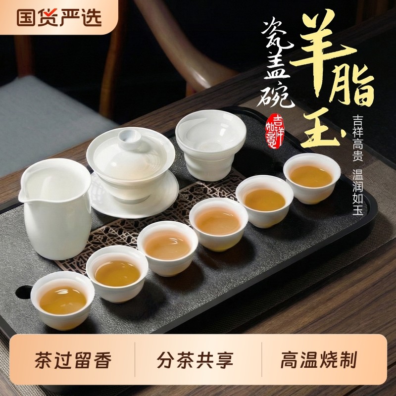 盖碗茶杯白瓷高档三才茶碗套装羊脂玉泡茶杯家用茶具新款功夫茶