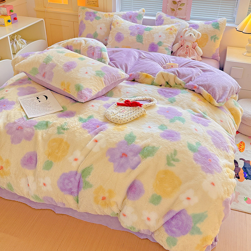 2025新款兔毛绒四件套冬季加厚保暖法莱绒床上用品床笠牛奶绒被套