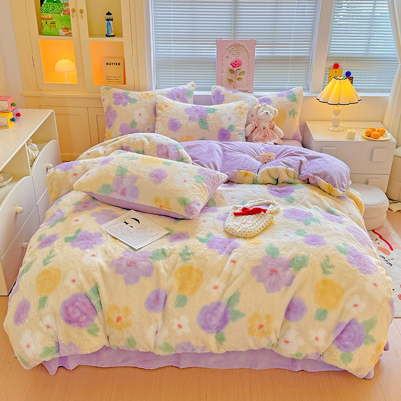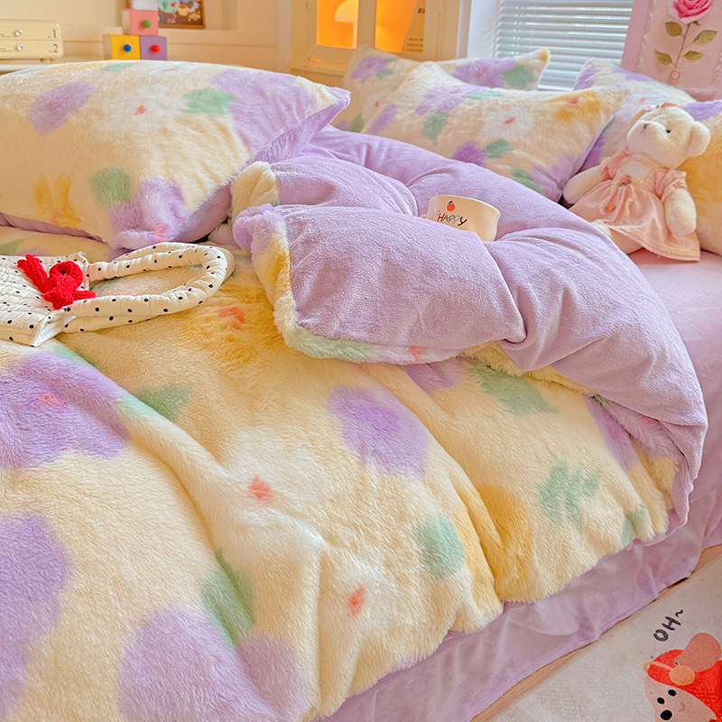 秋冬季加厚四件套牛奶绒被套床单双面加绒被罩床笠学生宿舍三件套