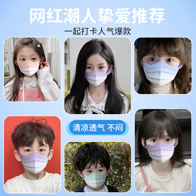 儿童KN95口罩4D立体学生卡通可爱小学生3到12岁四层防护独立包装