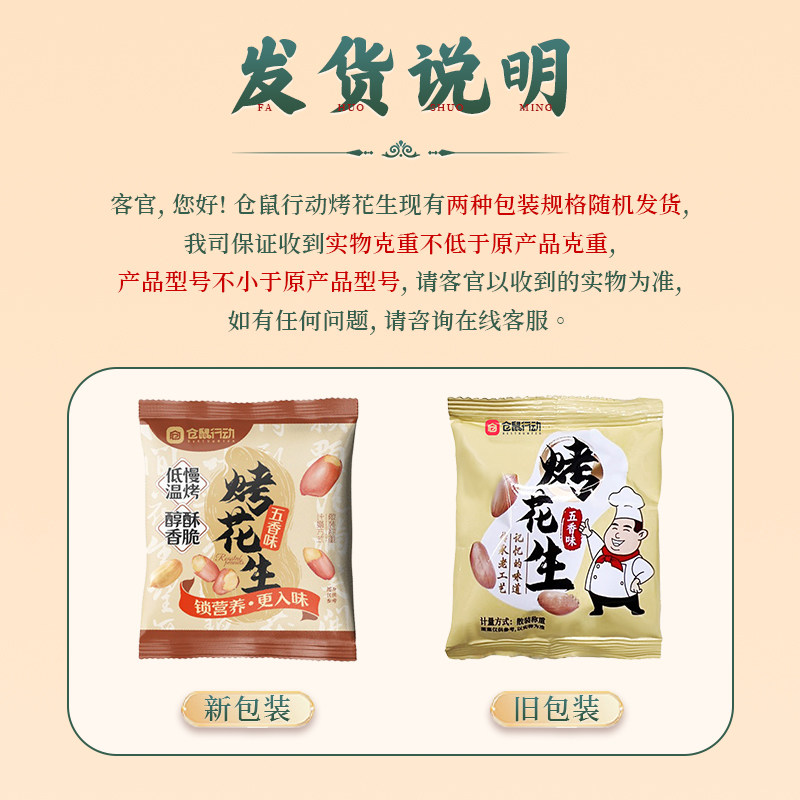 仓鼠行动五香烤花生米新货下酒菜正宗山东莱西脱油烤花生休闲零食