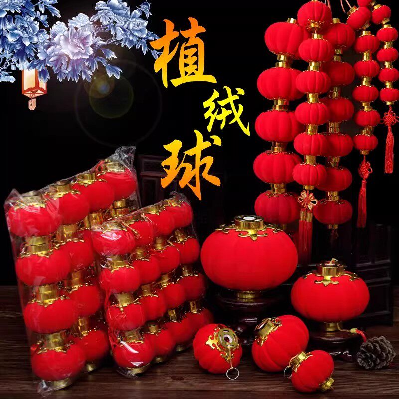 新年植绒小灯笼2026户外庭院子红宫灯春节过年装饰品年味场景布置