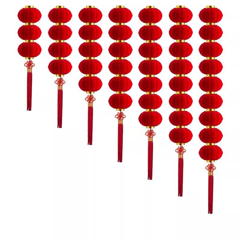 小灯笼串户外连串挂饰大红植绒灯笼节日喜庆装饰元旦场景布置灯笼