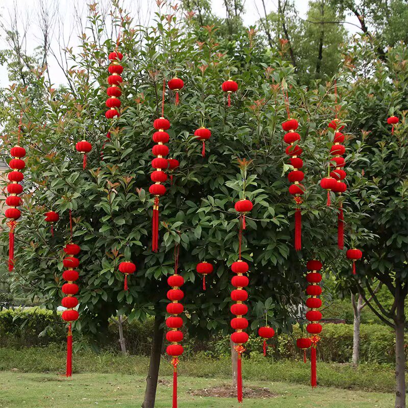 小灯笼串挂饰结婚布置乔迁新年户外装饰树上连串植绒大红灯笼绒布