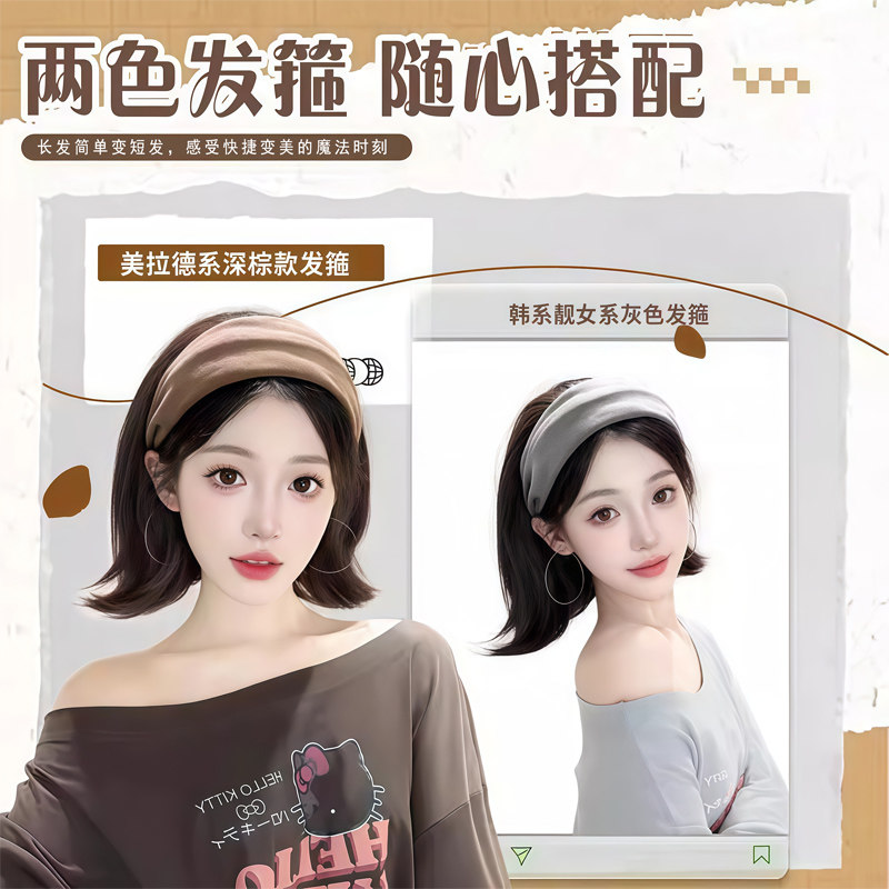 发箍假发一体女2025秋冬新款全头套式帽子短发卷发长发蓬松无刘海