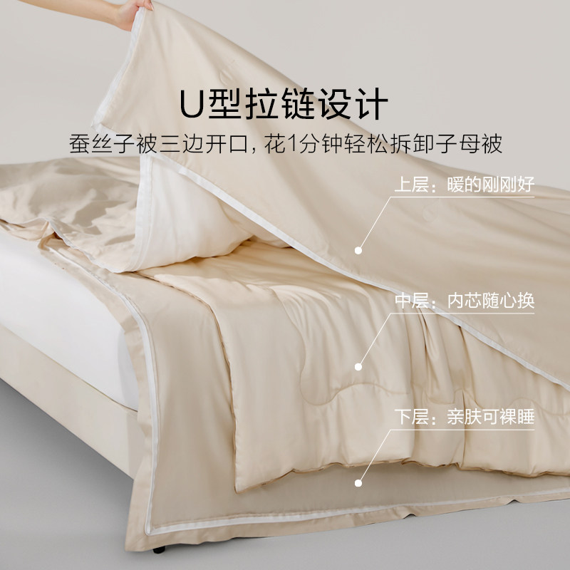 银桑INESANCE100支全棉A类蚕丝被双宫茧桑蚕长丝春秋四季子母被芯