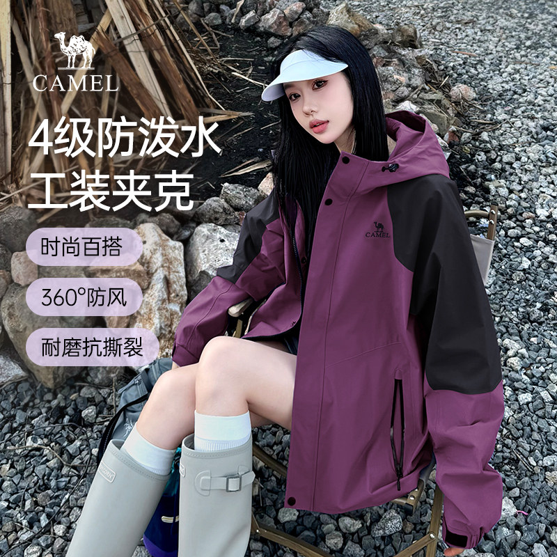 骆驼山海夹克女装2026秋冬新款紫色外套女户外工装百搭保暖登山服