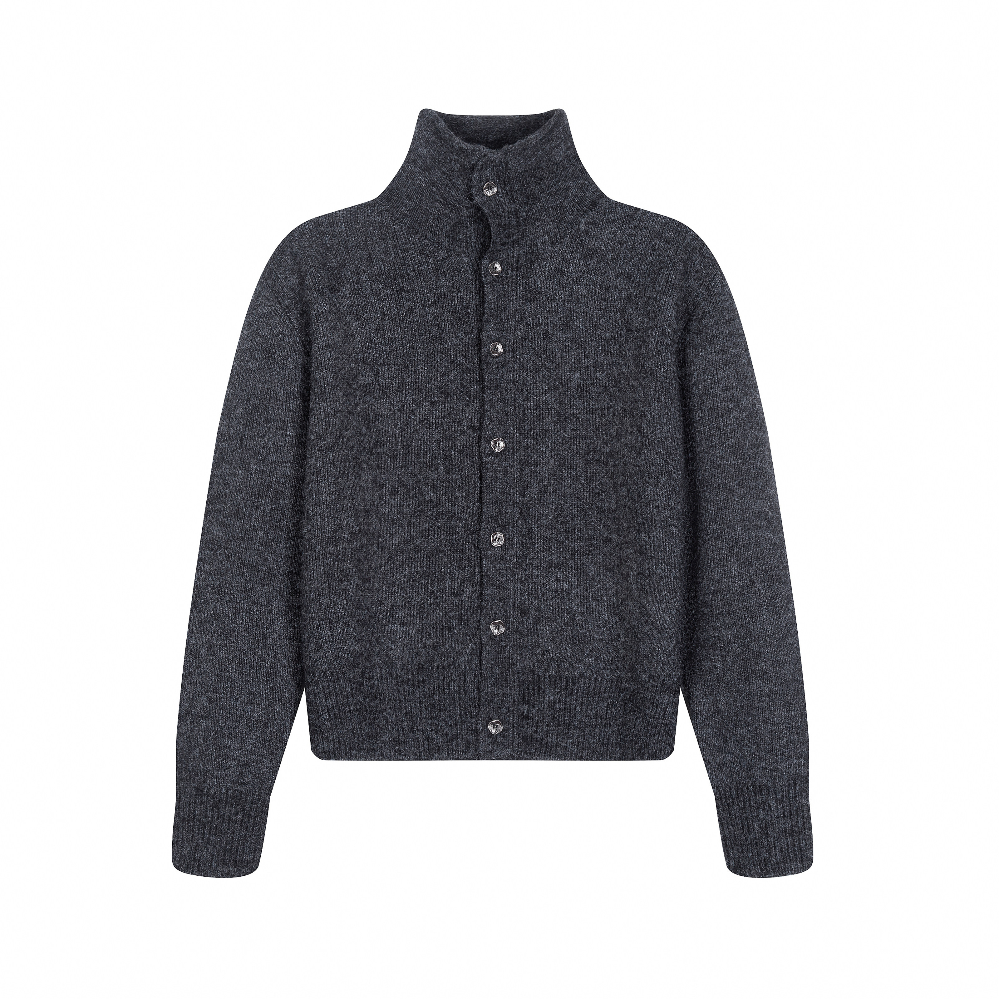 Succinct“隐”羊毛混纺卷边毛织立领纽扣开衫毛衣秋冬老钱风外套