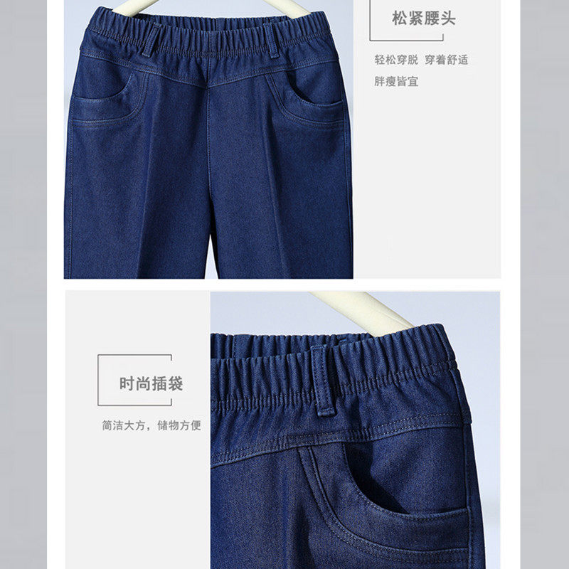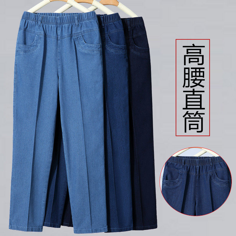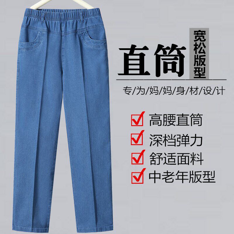 松紧腰牛仔裤女春秋洋气妈妈裤宽松直筒长裤大码高腰中老年牛仔裤