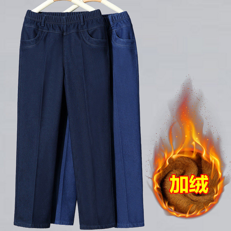 王家有鱼秋冬新款加绒阔腿裤2025百搭修身显瘦宽松直筒牛仔裤子女