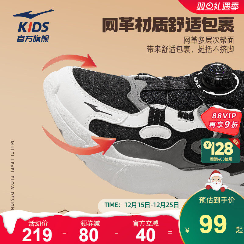 川流2|鸿星尔克童鞋儿童运动鞋男童新款休闲鞋青少年旋钮大童鞋子