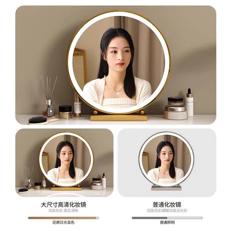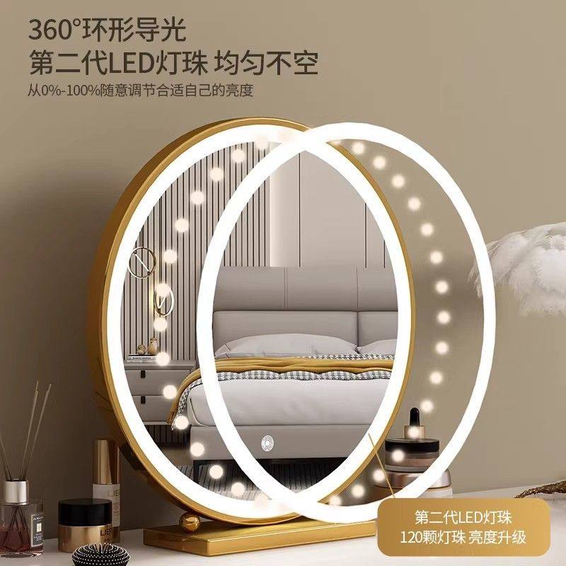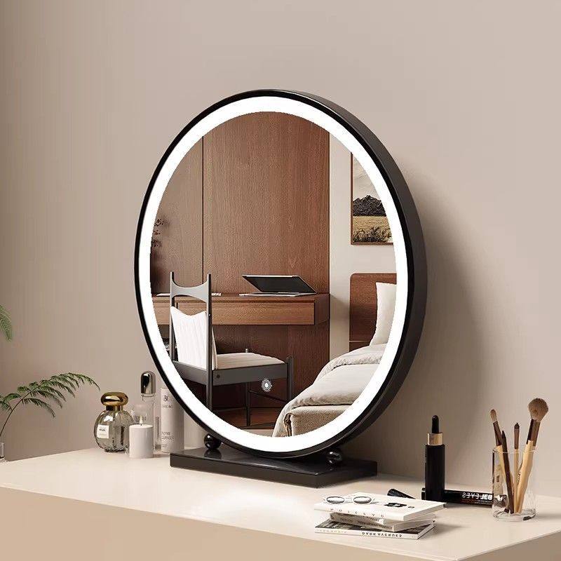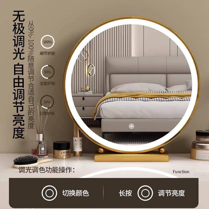 轻奢化妆镜圆形智能梳妆镜主卧台式桌面高级简约铁艺梳妆台大镜子