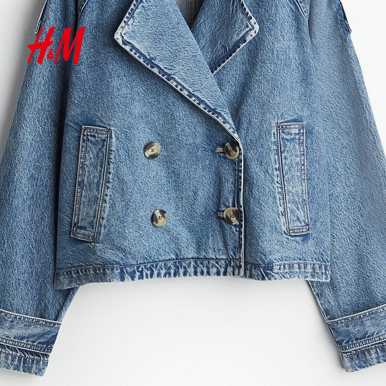 HM女装短外套春季设计感廓形休闲双排扣大廓形长袖短风衣1250175