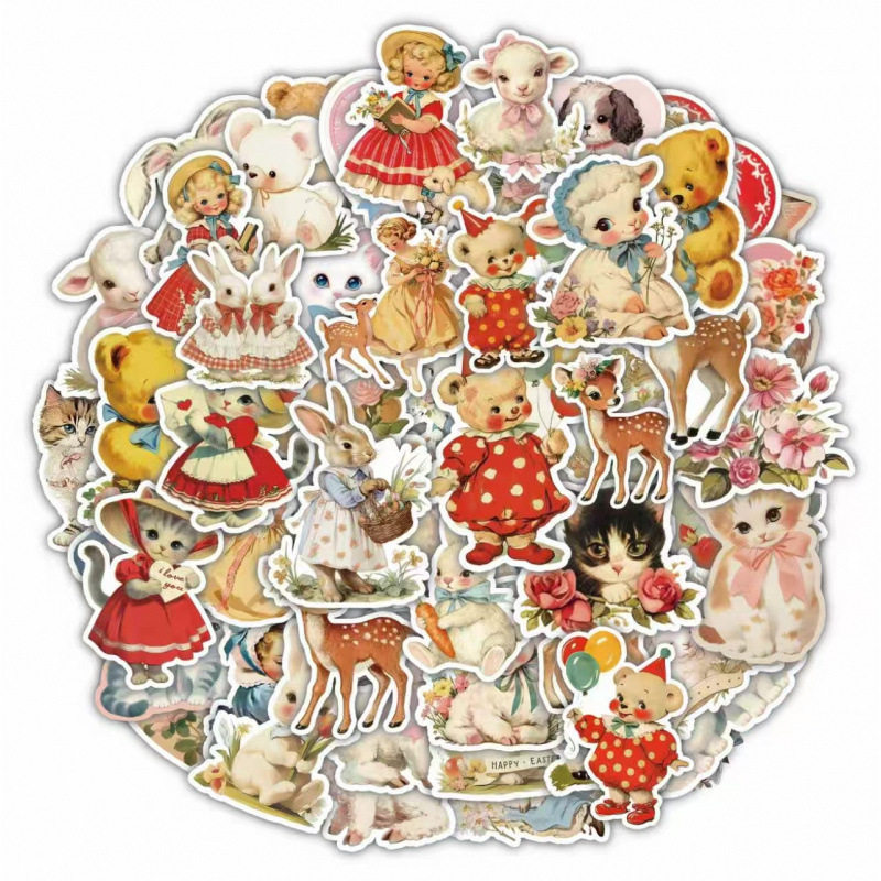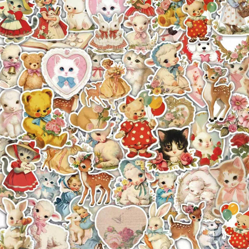 田园动物贴纸60张复古手帐行李箱笔记本电脑吉他头盔DIY装饰