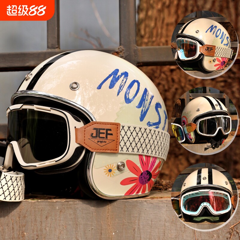 台湾摩托车风镜复古头盔男女骑行防晒防风沙3/4盔半盔护目镜