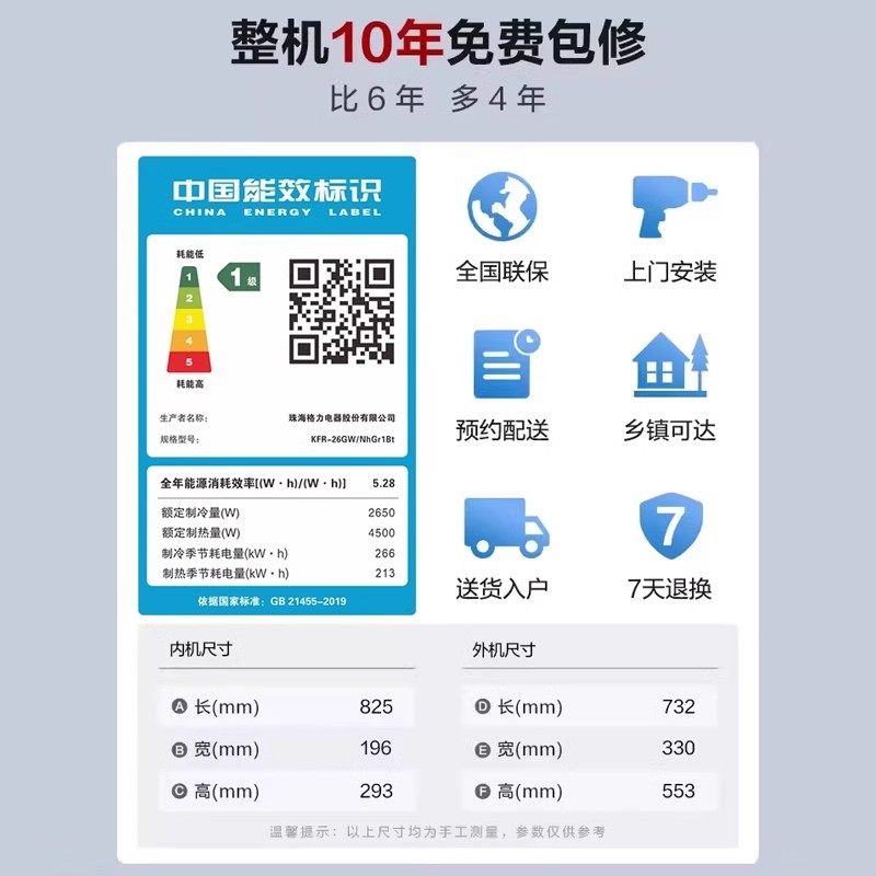 政府补贴【Gree/格力官方】新一级能效云欢/天仪1匹1.5匹空调挂机