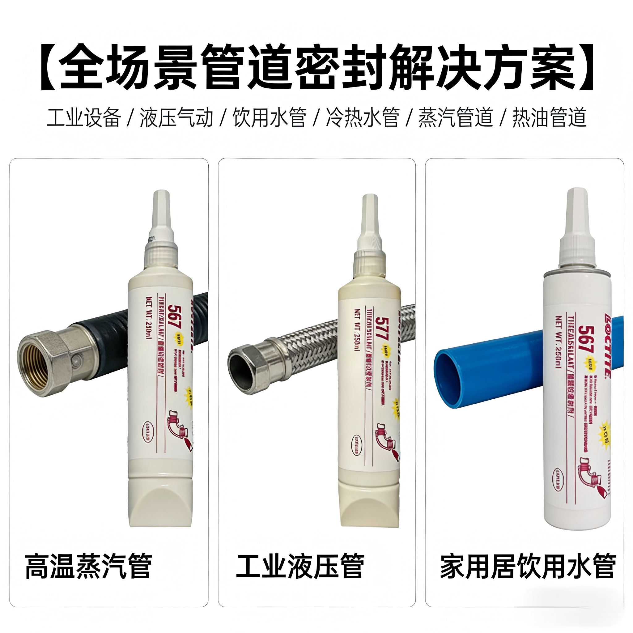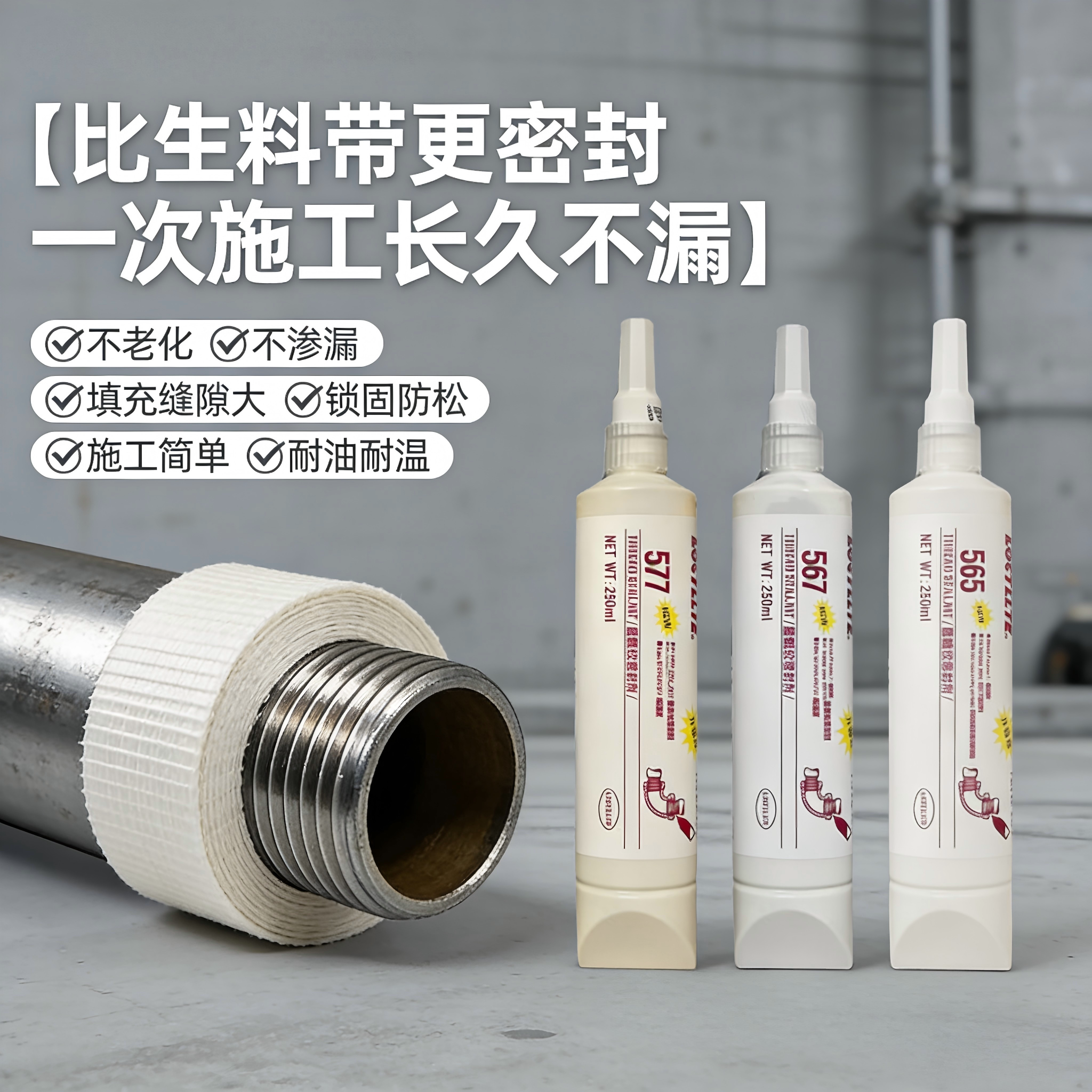 577/565/567 管道密封胶 耐高温可拆卸 工业家装水管螺纹密封剂