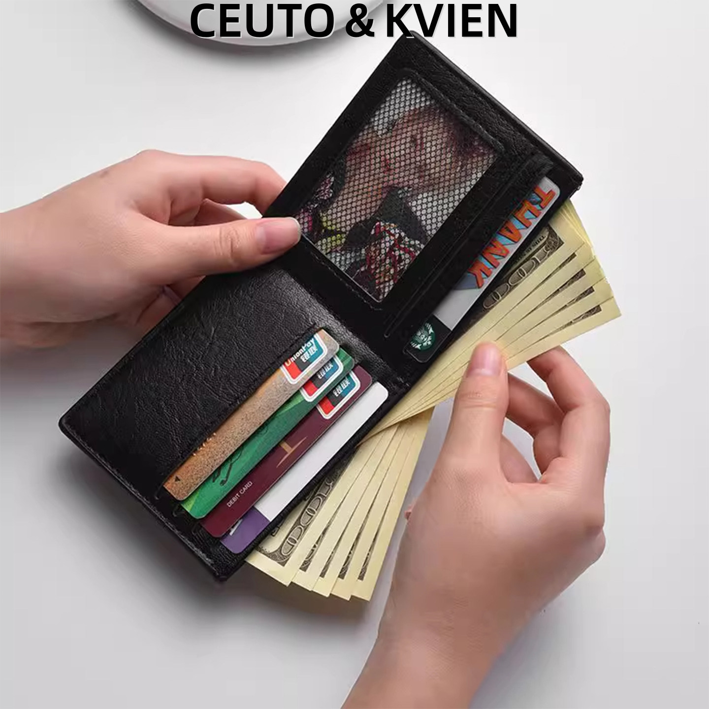 CEUTOKVIEN男士短款钱包真皮质感新款简约钱夹超薄卡包青年皮夹