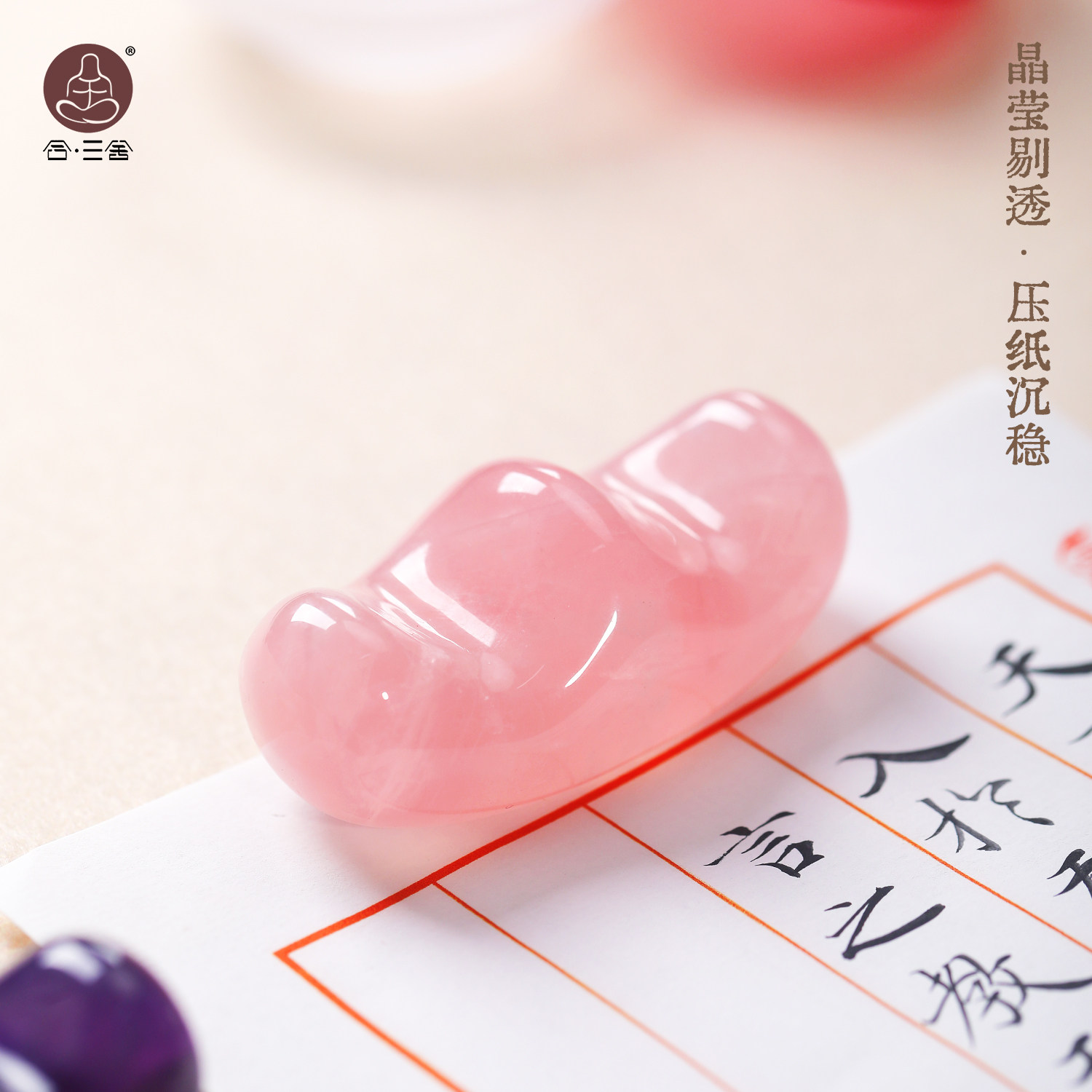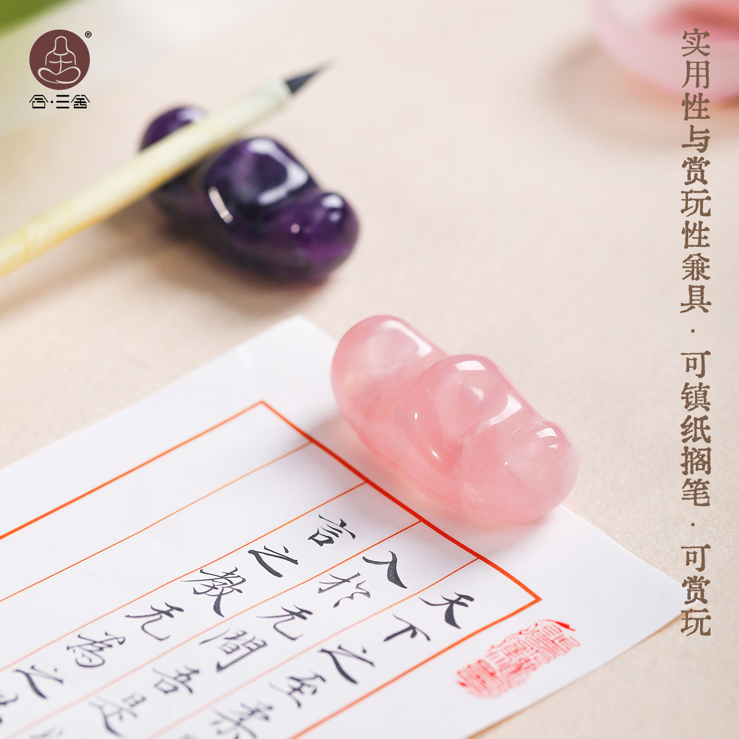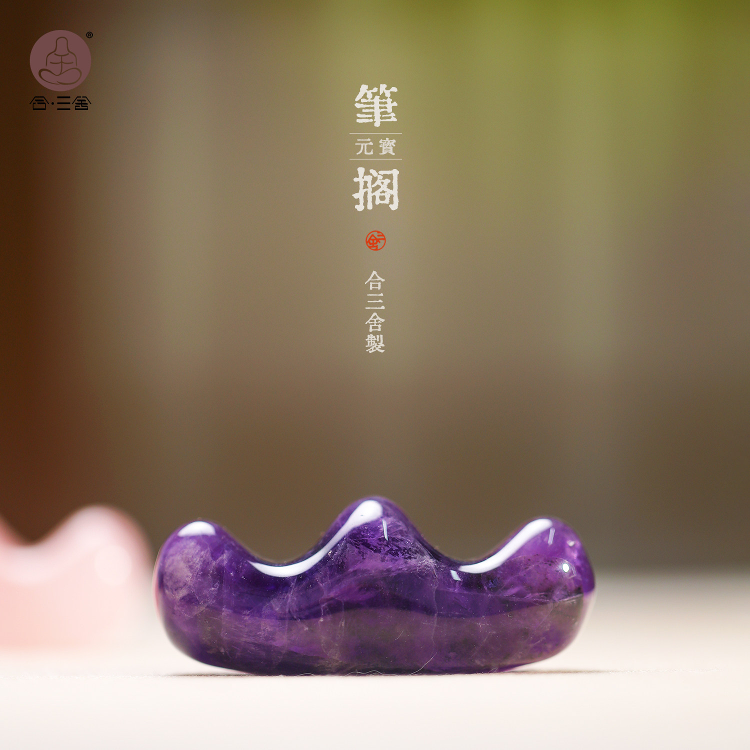 合三舍 元宝笔搁天然水晶 毛笔搁镇纸独特紫色玉石笔山简约桌面收纳摆件装饰书法国画文房镇尺文房四宝笔架