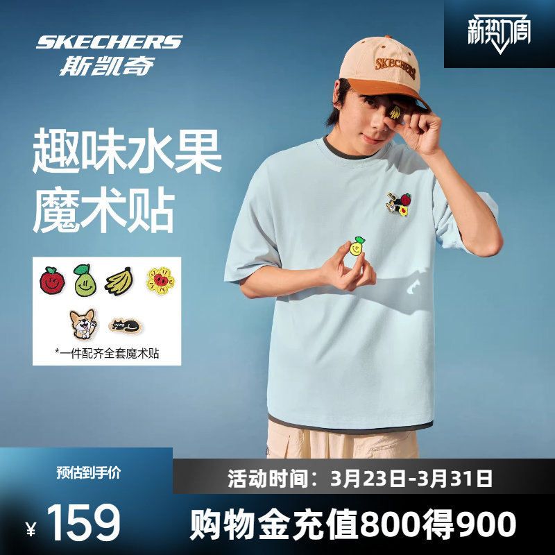 斯凯奇印花短袖男女魔术贴T恤宽松舒适短裤