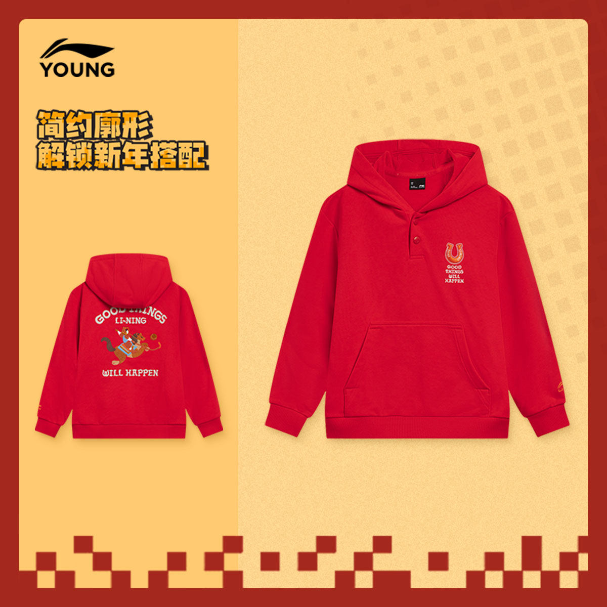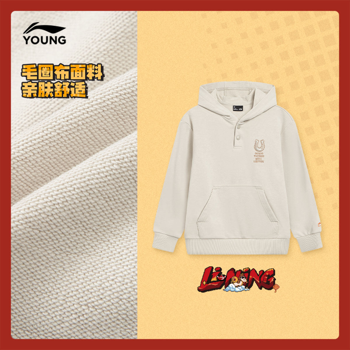 商场同款|新年款李宁儿童红色卫衣2026本命年男童装女中大童衣服
