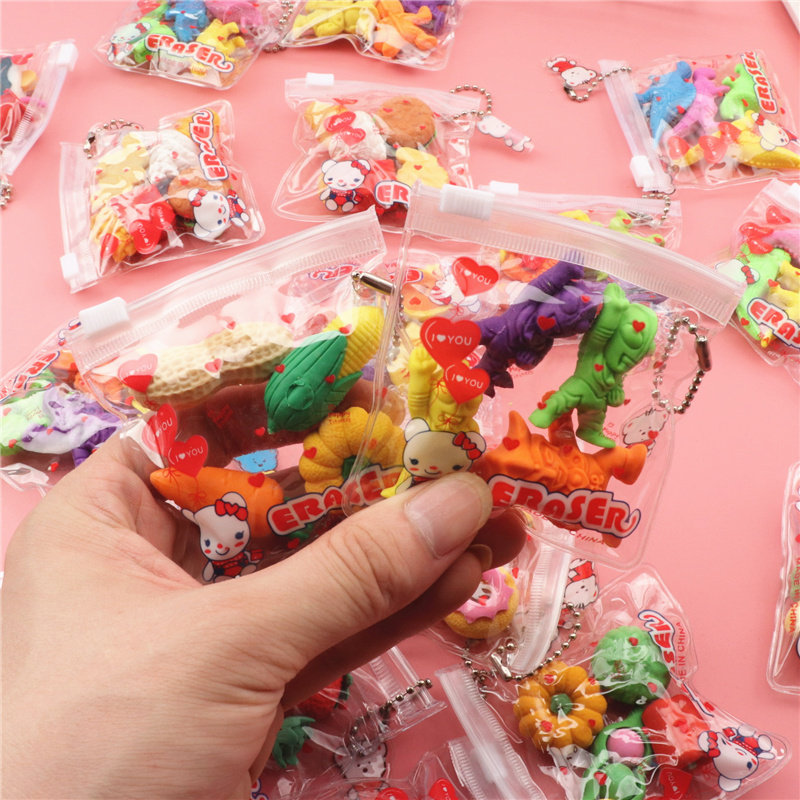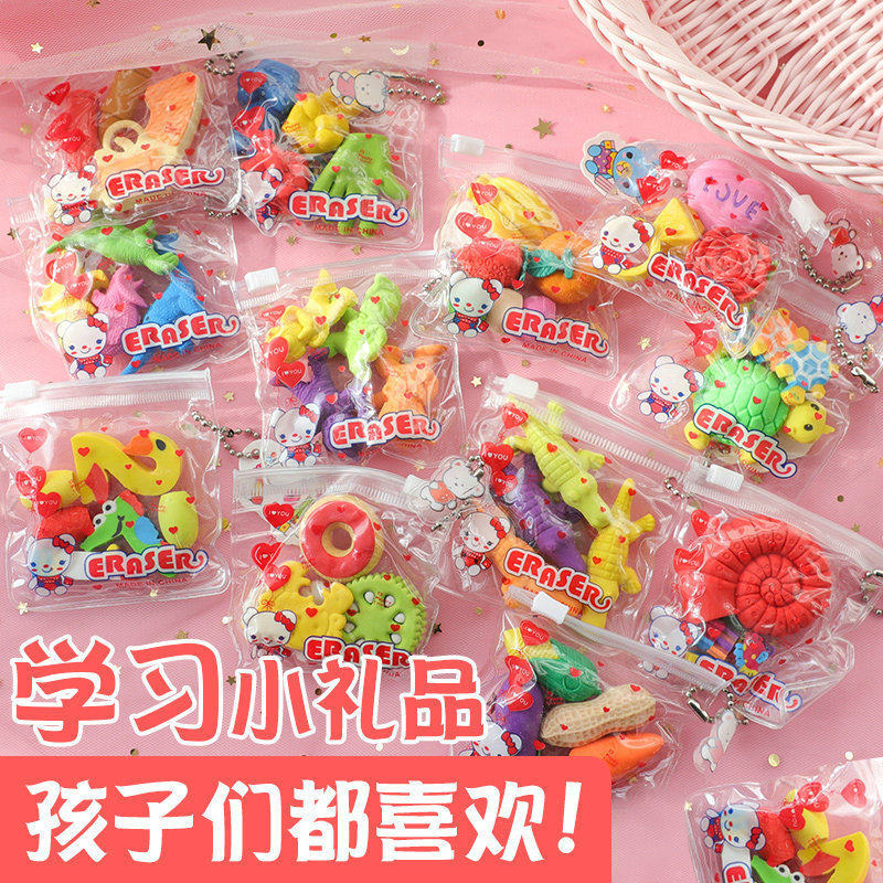 小学生卡通橡皮套装可爱甜点恐龙橡皮擦文具幼儿园小奖品礼物赠品