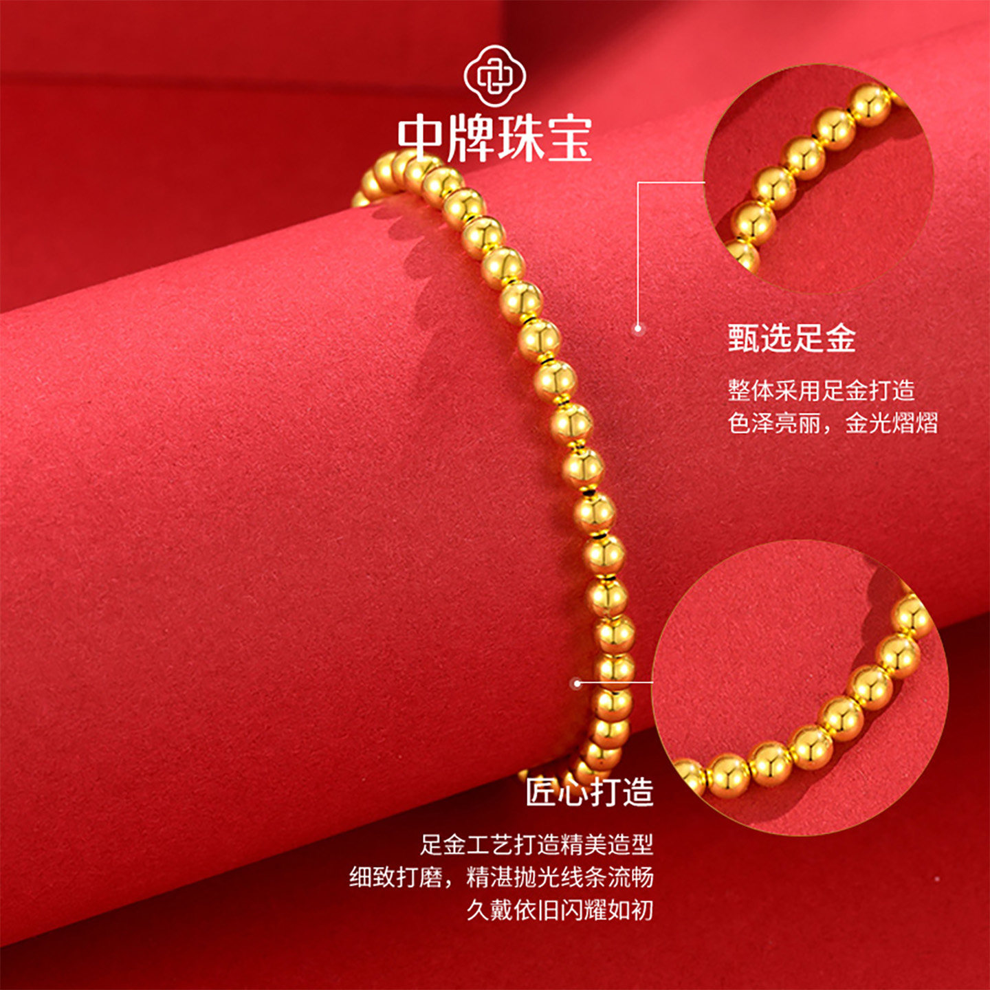 小金珠黄金手链足金小光珠金手链珠来运转运珠金珠金手串纯金女