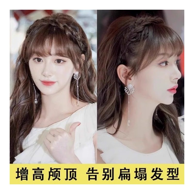 遮白发发箍鱼骨辫假发刘海一体增高颅顶鬓角麻花辫子发饰防滑发型