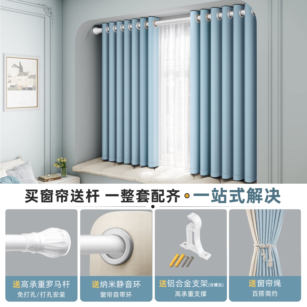 窗帘2025新款一整套罗马杆遮光免打孔安装卧室飘窗小窗户高级感布