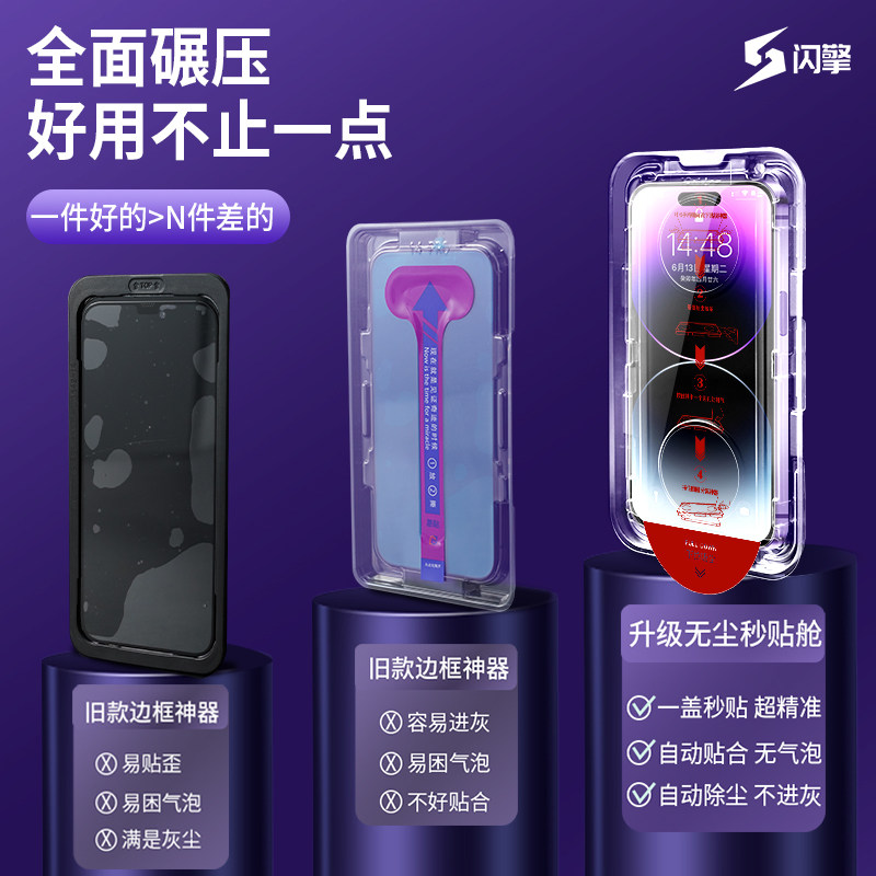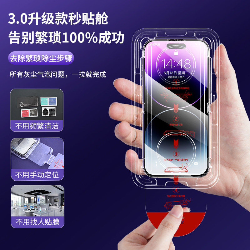 无尘仓适用苹果14钢化膜iphone14promax秒贴15手机膜13pro新款X防指纹XS全屏XR防窥12/11防尘膜xsmax贴膜神器