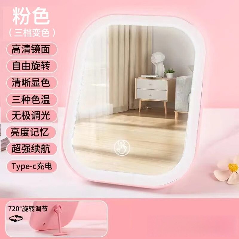 女折叠学生随身便携镜子带灯补光led化妆镜宿舍桌面台式梳妆镜