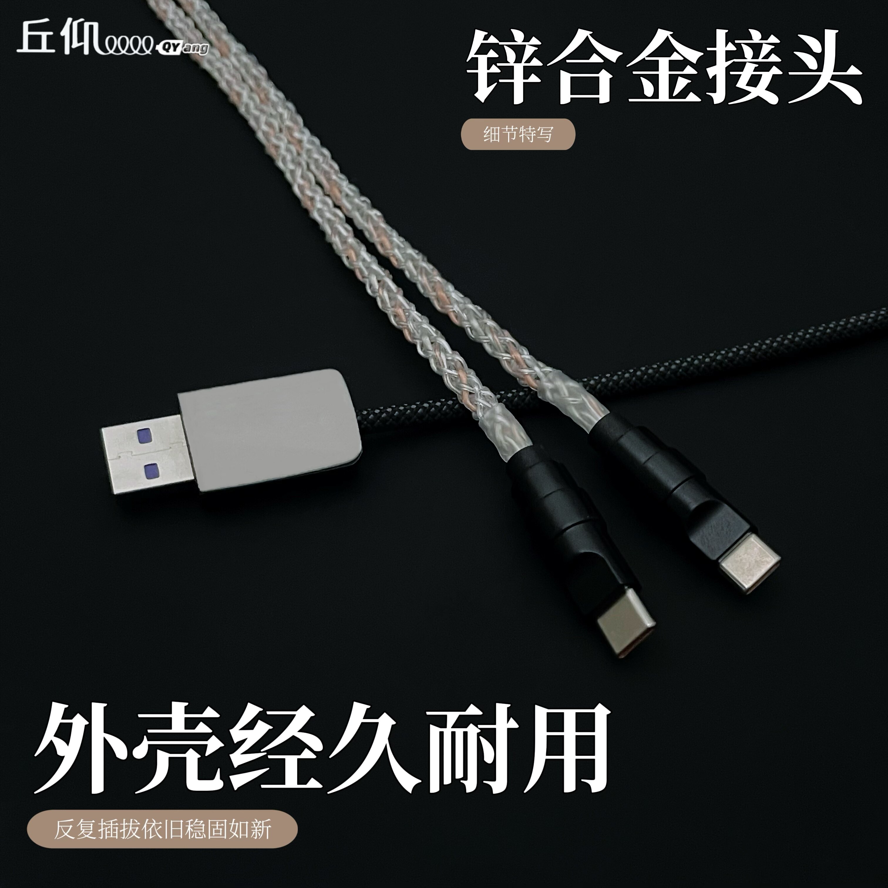 丘仰原创发光一拖二键盘线双头8k电竞磁轴机械键盘数据线双typec