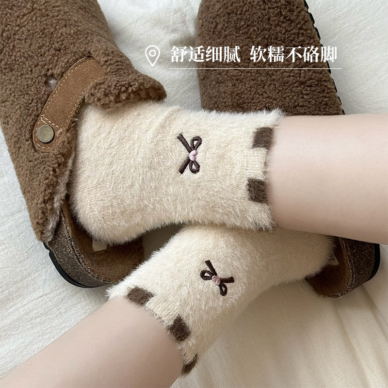水貂绒袜子女士2025新款爆款秋冬季月子袜加绒加厚保暖中筒堆堆袜