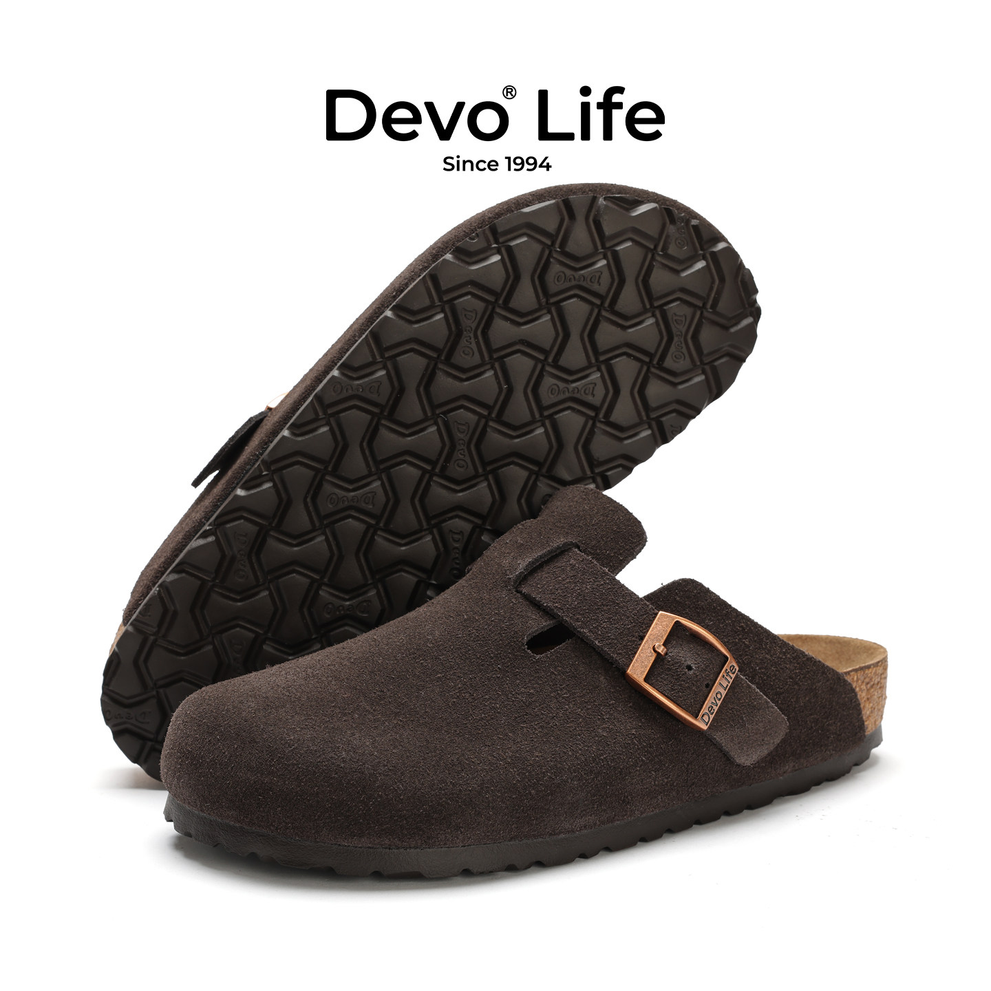 Devo/的沃软木拖鞋女半包休闲懒人半拖情侣套脚勃肯鞋 3624
