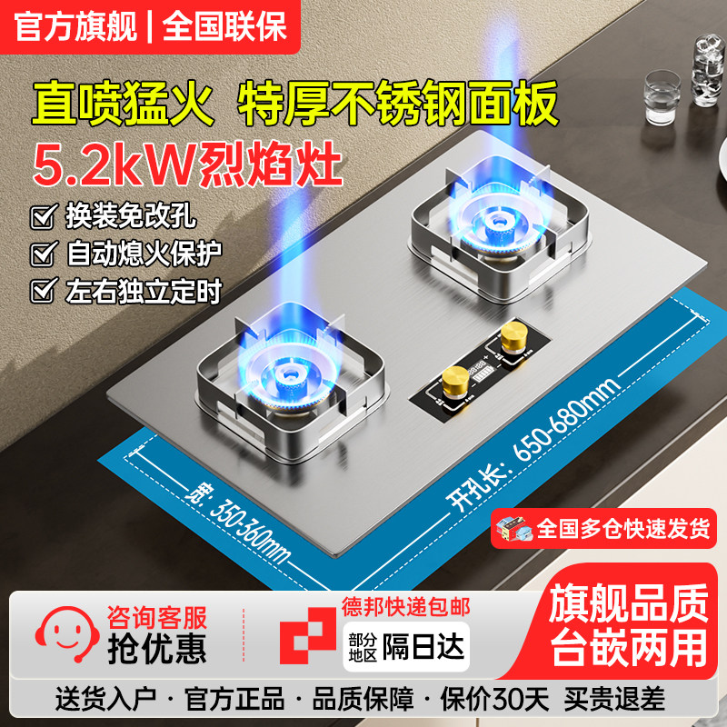 沃麦好太太新款燃气灶双灶家用天然气定时液化气嵌入式节能煤气灶