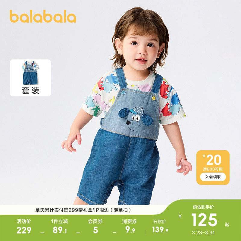 巴拉巴拉童装宝宝短袖套装夏装男童背带裤两件套2026休闲时尚百搭
