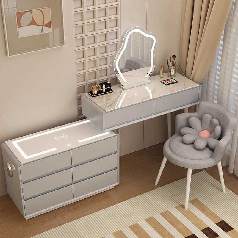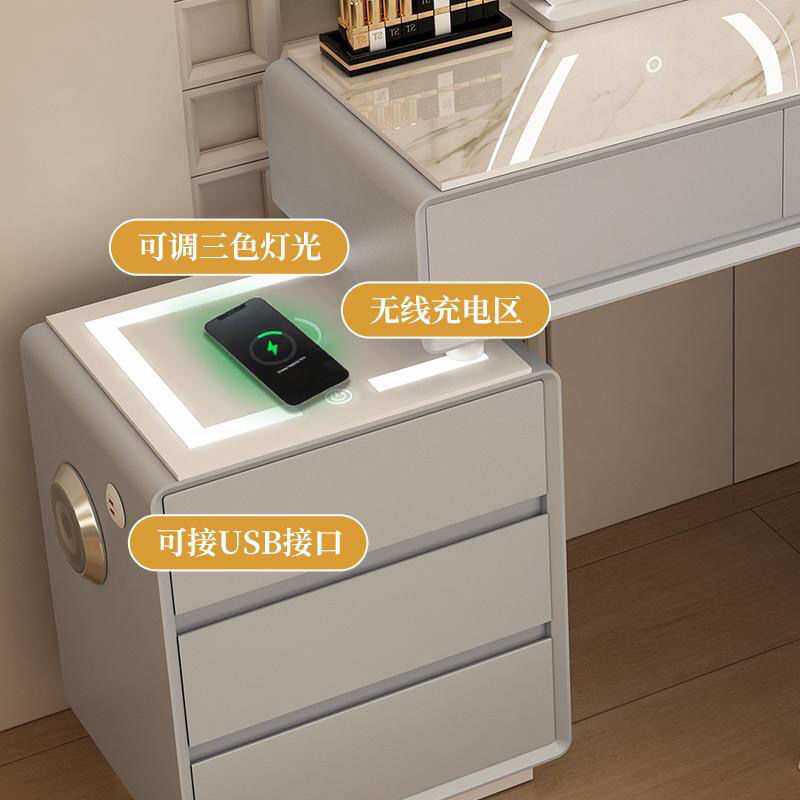 【新品低价】奶油风梳妆台斗柜一体转角化妆台卧室书桌实木收纳柜
