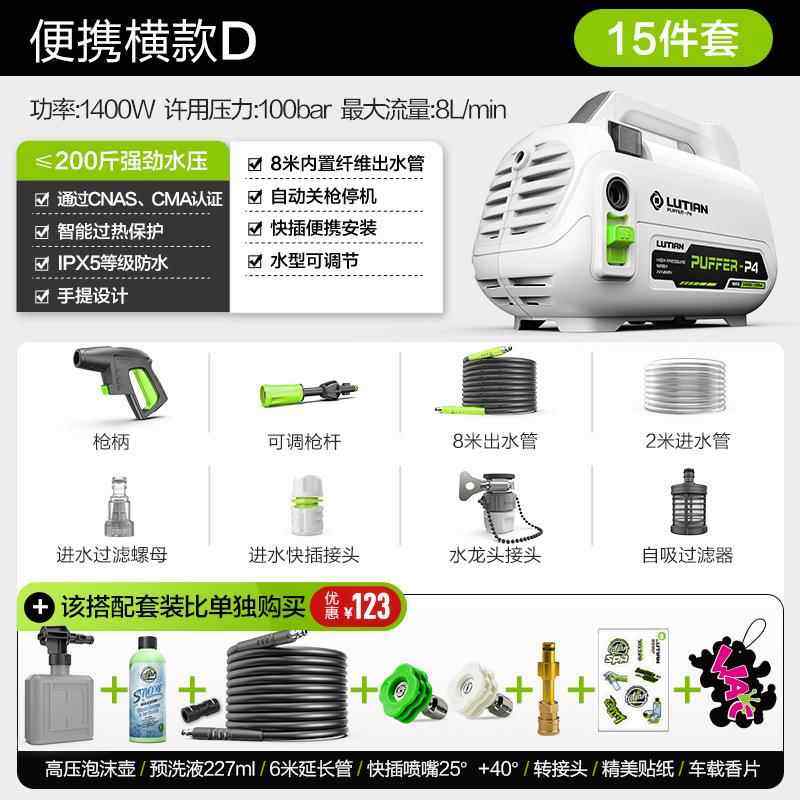 绿田洗车机便携式高压水泵家用220V全自动新型刷车神器大功率水枪