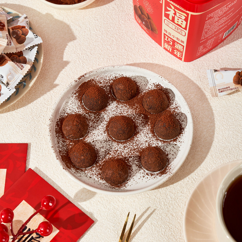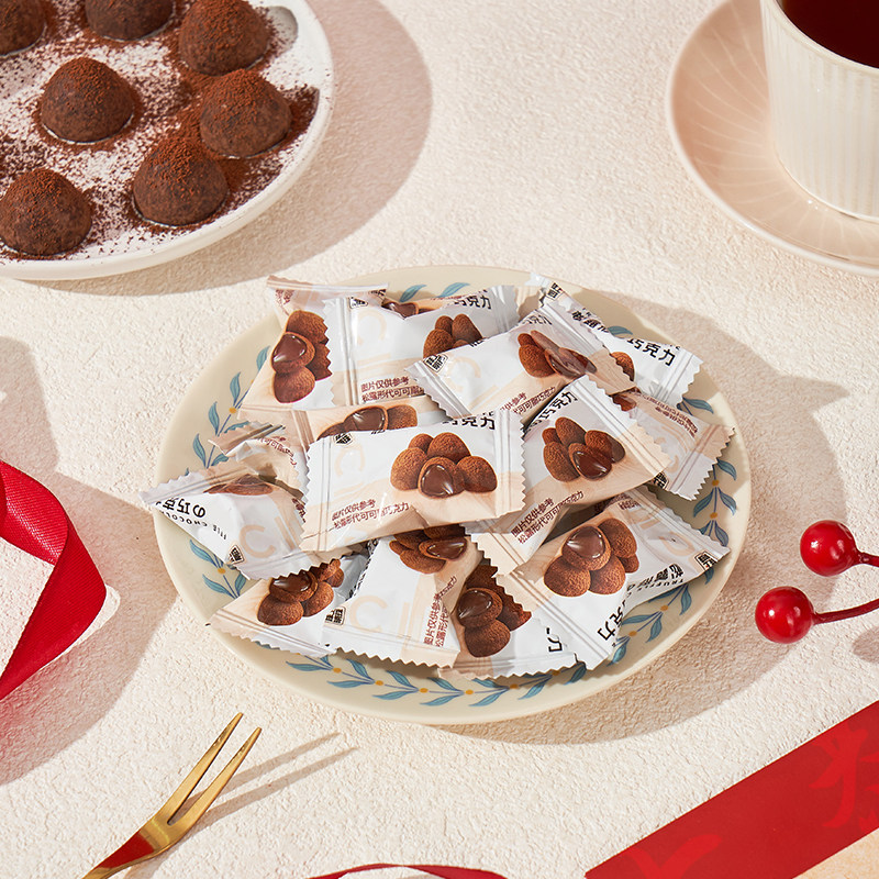 黑松露形巧克力独立小包装喜糖休闲零食年货代可可脂新年解馋手工