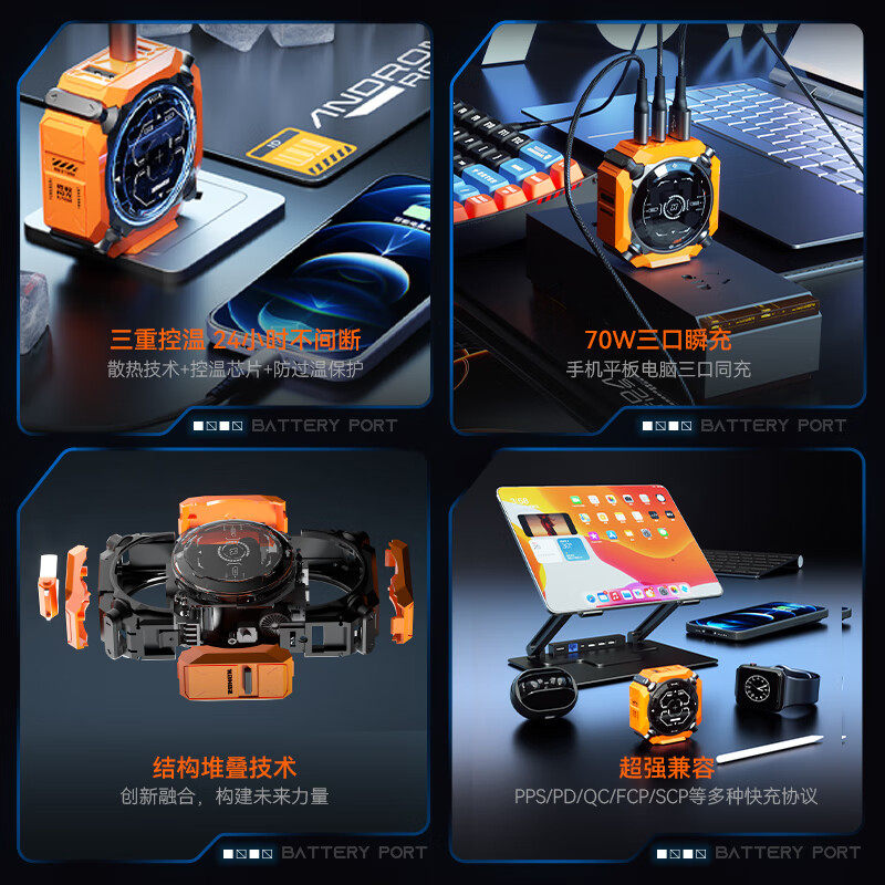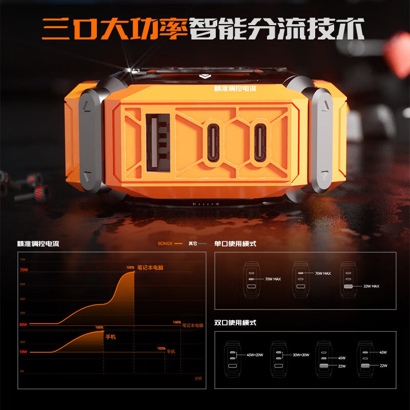 SONGX氮化镓充电器70W快充手机充电头多口PD快充折叠适用苹果三星