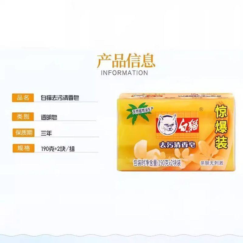 白猫去污清香皂透明洗衣皂去污留香家用清洁皂家庭装国货老字号